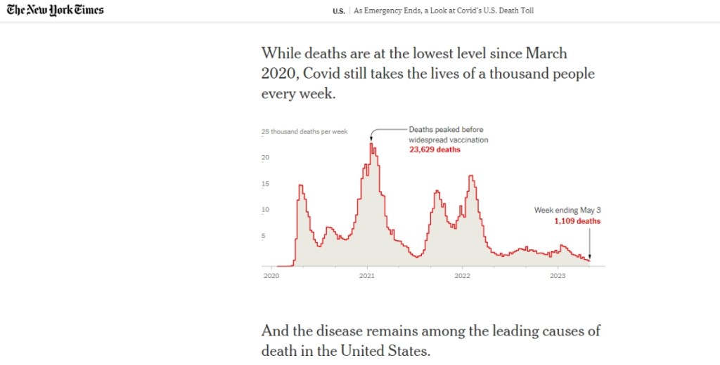 Even though the World Health Organization, ‘WHO’ and the CDC have declared the COVID Health Emergency is over, more than 1000 people in the US died from COVID related issues in 2023.